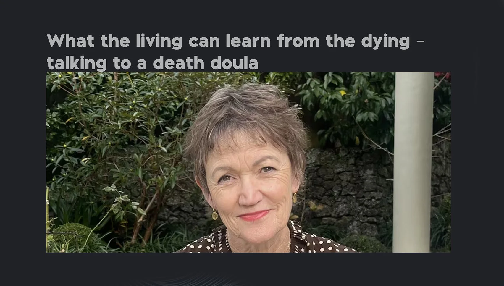 Kathryn Ryan talks to Treza about ‘Doulas helping people treat death as a journey’.